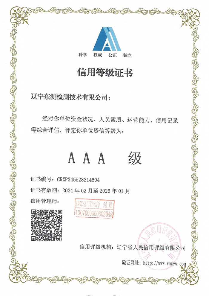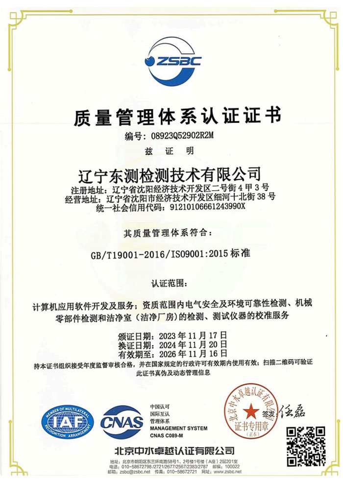 遼寧東測檢測技術(shù)有限公司成立于2007年6月21日,專注于為客戶提供計量、檢測以及技術(shù)咨詢與培訓的第三方計量檢測機構(gòu)。遼寧東測檢測技術(shù)有限公司通過了中國合格評定國家認可委員會認可(CNAS),獲得檢驗檢測機構(gòu)資質(zhì)認定(CMA),憑借著高效的服務(wù)網(wǎng)絡(luò)、雄厚的技術(shù)實力以及全面的業(yè)務(wù)范圍,本著“科學、公正、準確、真誠”的質(zhì)量方針,為社會提供優(yōu)質(zhì)計量檢測服務(wù),打造國內(nèi)具有價值的計量技術(shù)機構(gòu)。